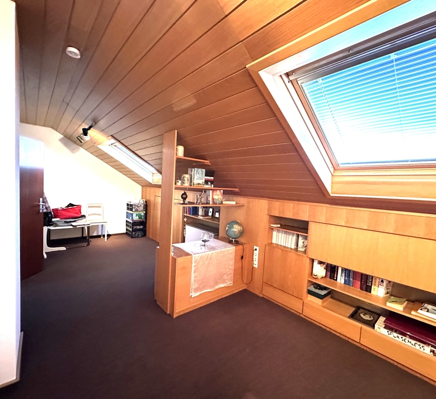 Das ausgebaute Dachgeschoss mit zwei weiteren großzügigen Räumen, zwei Duschbädern und WC bieten zusätzliche Nutzungsmöglichkeiten – ideal als Homeoffice, Gäste-Etage oder Hobbybereich (nicht in der Wohnfläche enthalten).