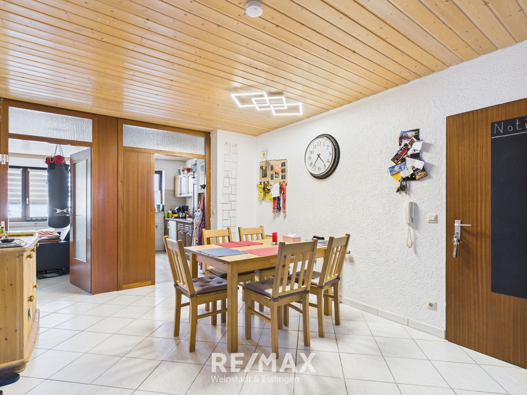 3,5-Zimmer Wohnung im 1.Obergeschoss eines 9-Familienhauses in Weinstadt-Endersbach.Die Böden im Wohnzimmer, Flur, Küche, Bad und WC sind hell gefliest. Im Schlafzimmer und Kinderzimmer liegt Parkettboden.