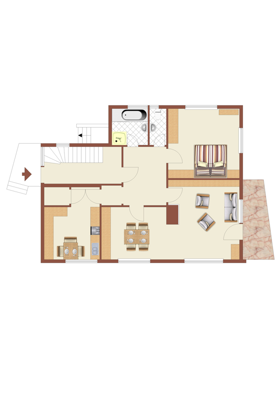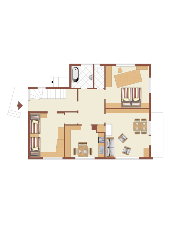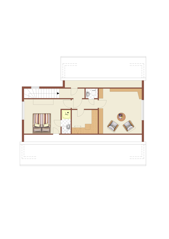 (TE 3) Die DG-Wohnung mit ca. 37 m² (18,5 %), besteht aus einem Wohnzimmer, Schlafzimmer mit Bad en Suite, bestehend aus Dusche und Waschbecken und einem sep. WC. Dazu gehört noch ein Abstellraum im DG und ein Abstellraum im UG. Im UG befinden sich die Waschküche, sowie die Abstellräume der Wohnungen mit dem Zugang zum Gewölbekeller und das Sondereigentum zum TE 2.