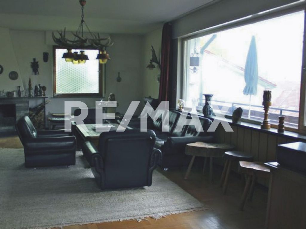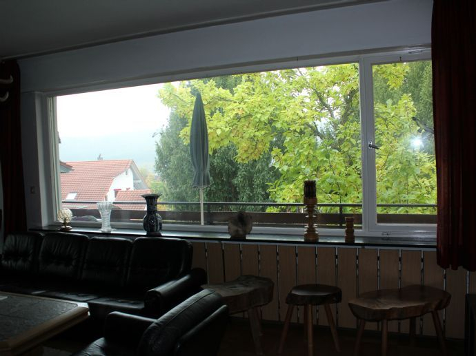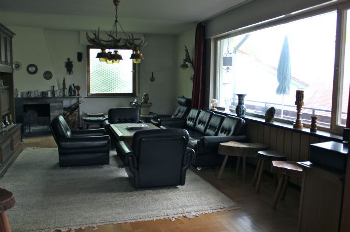 - Großer Wohn-Essbereich mit herrlichem Panoramfenster und offenem Kamin. Von hier aus hat man Zugang auf den Balkon mit Blick ins Tal
