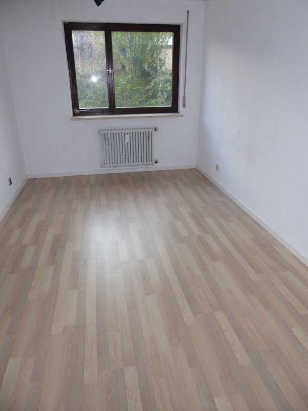 + Zwei Kinderzimmer mit hellem Laminat ausgestattet