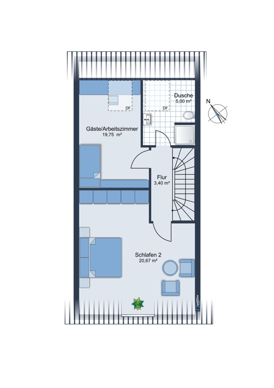 Gäste/Arbeitszimmer mit Dachfenster und elektr. Rollladen