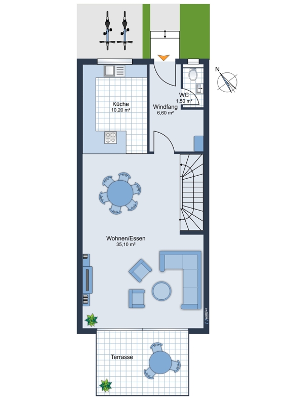 Bei dem neuwertigen, dreistöckigen Reihenmittelhaus mit Garten handelt es sich um eine attraktive Immobilie, in ruhiger Anliegerstraße (Sackgasse) mit Blick ins Grüne, die durch eine sehr gehobene Innenausstattung besticht.Lagebeschreibung: