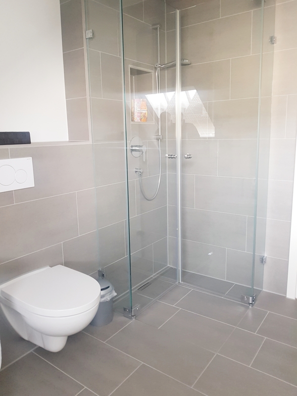 Duschbad mit WC und Dachfenster mit Innen-Jalousie