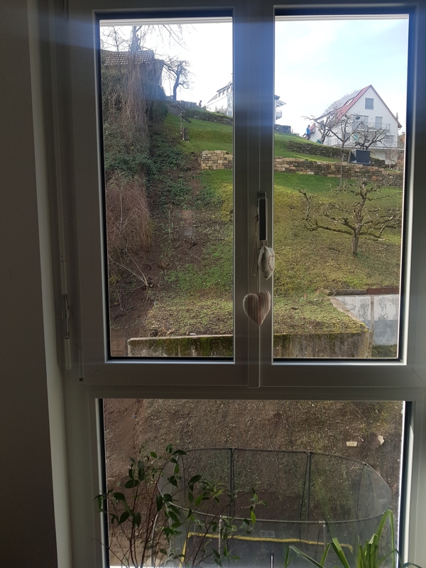 Große Terrassen-Schiebetür mit elektrischen Außen-Jalousien und Schiebe-Fliegengittertür