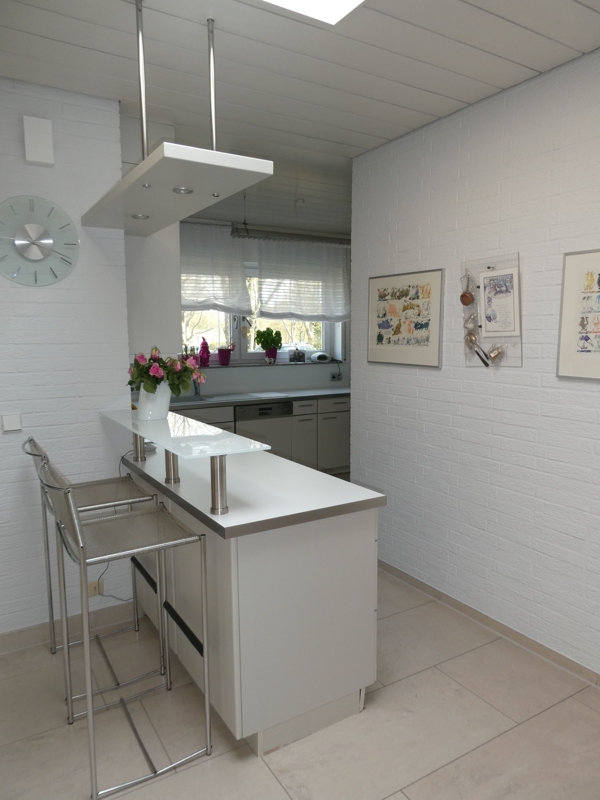 + Die offene Küche mit schöner Theke, EBK incl. Spüle, Spülmaschine, Cerankochfeld und Backofen