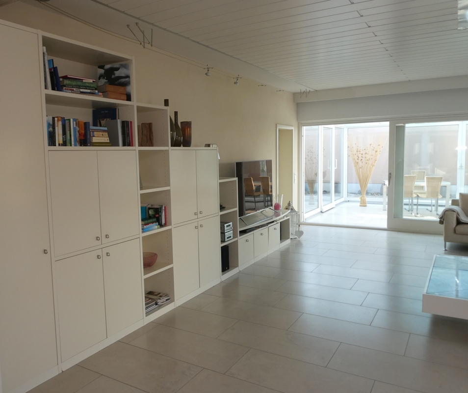 Bungalow mit großzügigem, lichtdurchflutetem Wohn-/Essbereich und offener Küche. Über den Wintergarten gelangen Sie auf die Terrasse und in den Garten. 3 Schlafzimmer, 2 Badezimmer. Im UG befindet sich ein großzügiges Zimmer sowie ein Büroraum mit separatem Zugang.Lagebeschreibung:
