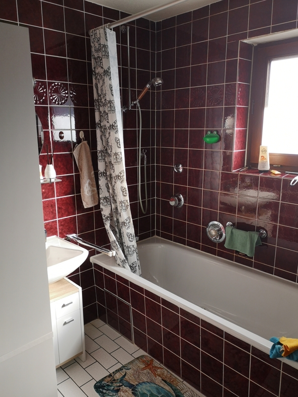 - Das Bad und das WC sind gefliest