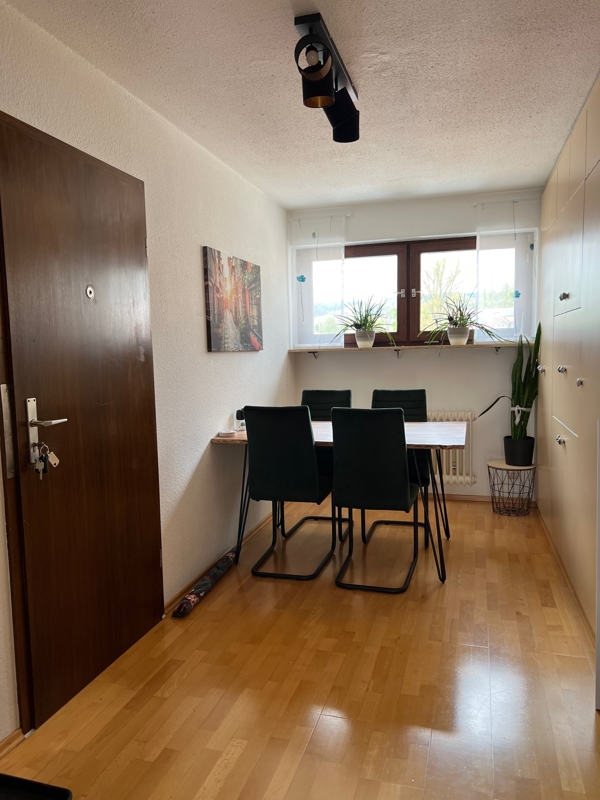 - Esszimmer, abgetrennt zur Küche mit einer Schrankwand inkl. Durchreiche zur Küche