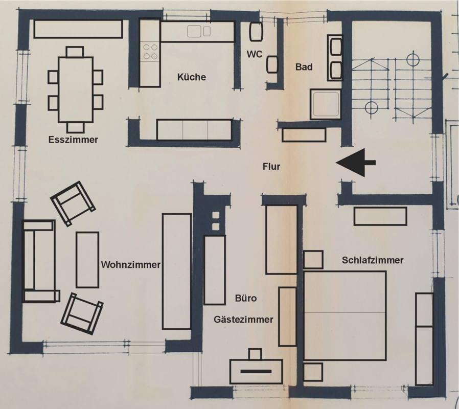Die Wohnung liegt im Ortskern von Strümpfelbach. Zum Bäcker über die Straße. Mit dem Bus zur S-Bahn Haltestelle Endersbach ca.8 Minuten.Ausstattung: