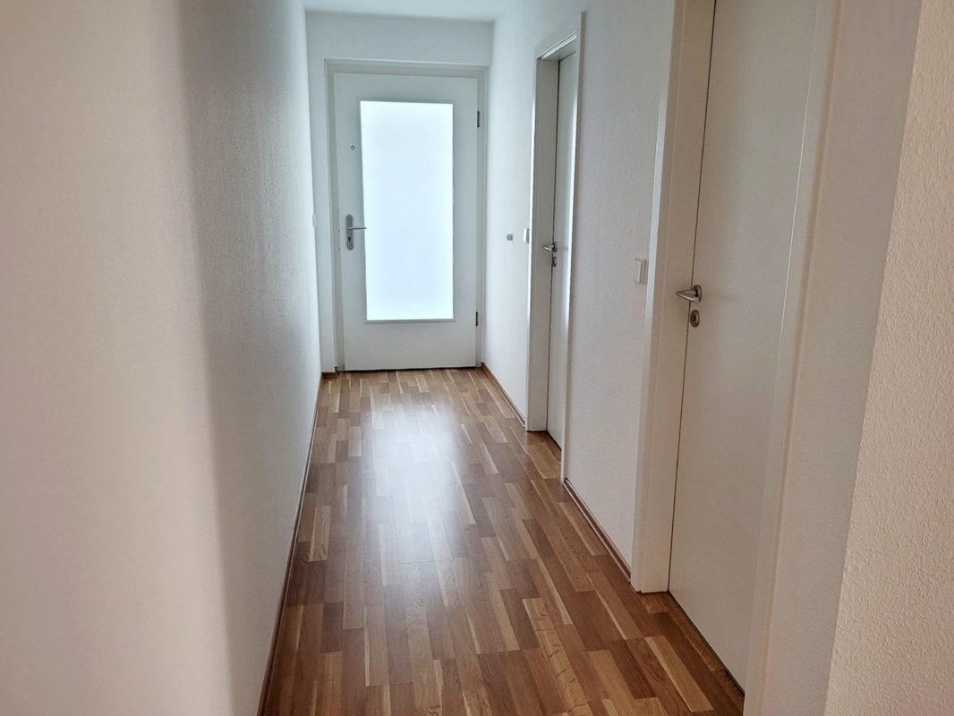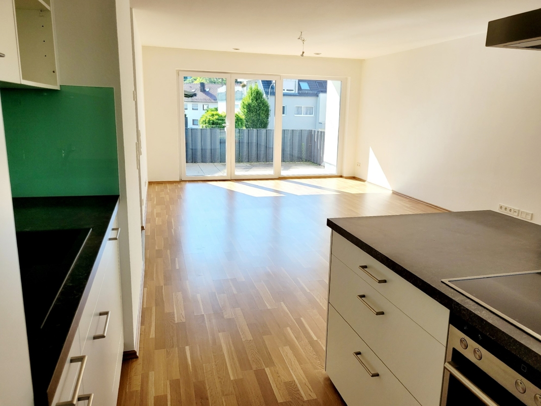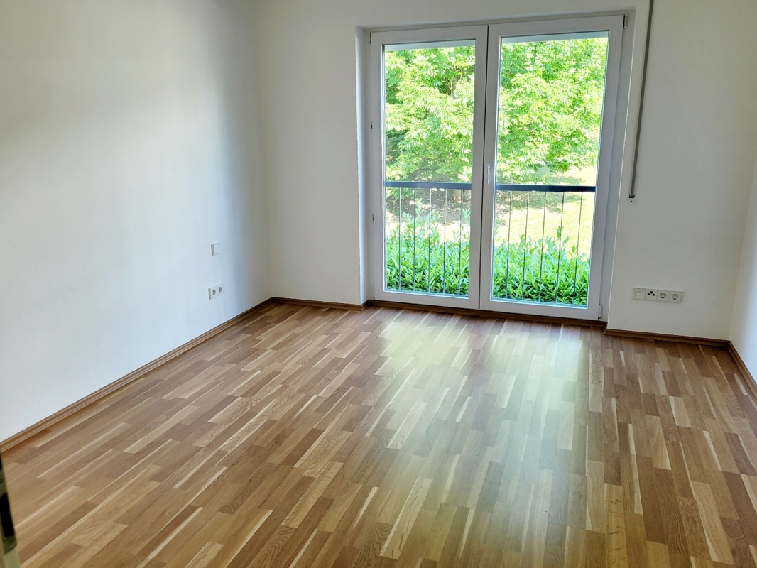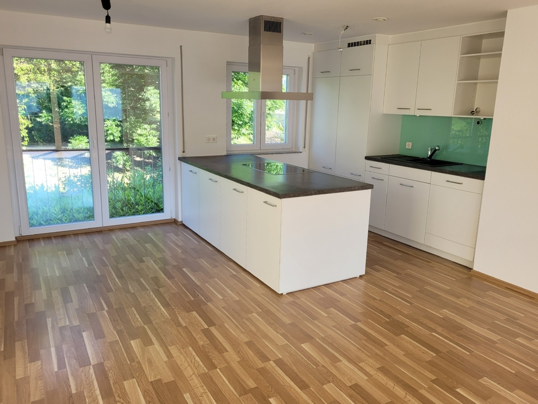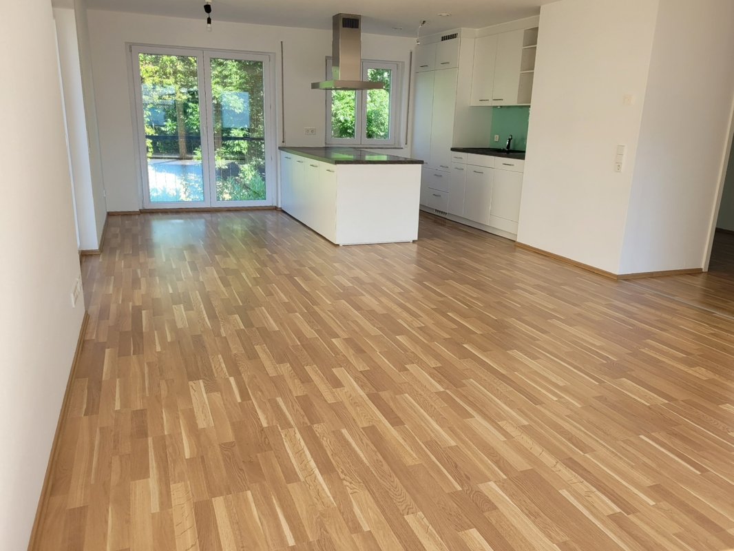 Die Zimmer sind mit Laminatboden ausgestattet. Das Tageslichtbad hat eine geräumige Dusche, ein Waschbecken und ein WC. Ein Gäste-WC steht ebenfalls zur Verfügung. Die offen gestaltete Küche mit anschließendem Essbereich ist mit einer modernen Einbauküche mit allen elektrischen Geräten ausgestattet. Vom Wohnbereich gelangt man auf den geräumigen überdachten Südost-Balkon.Zur Wohnung gehören 2 Tiefgaragenplätze zu je € 17.500,- ein Kellerraum und ein Waschmaschinenplatz.