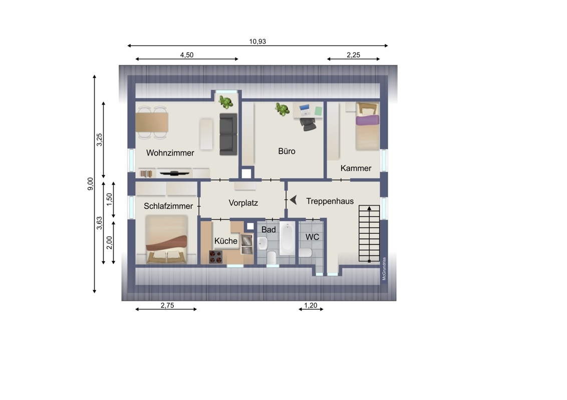 Dachgeschoss: 3-Zimmer, ca. 42 m²