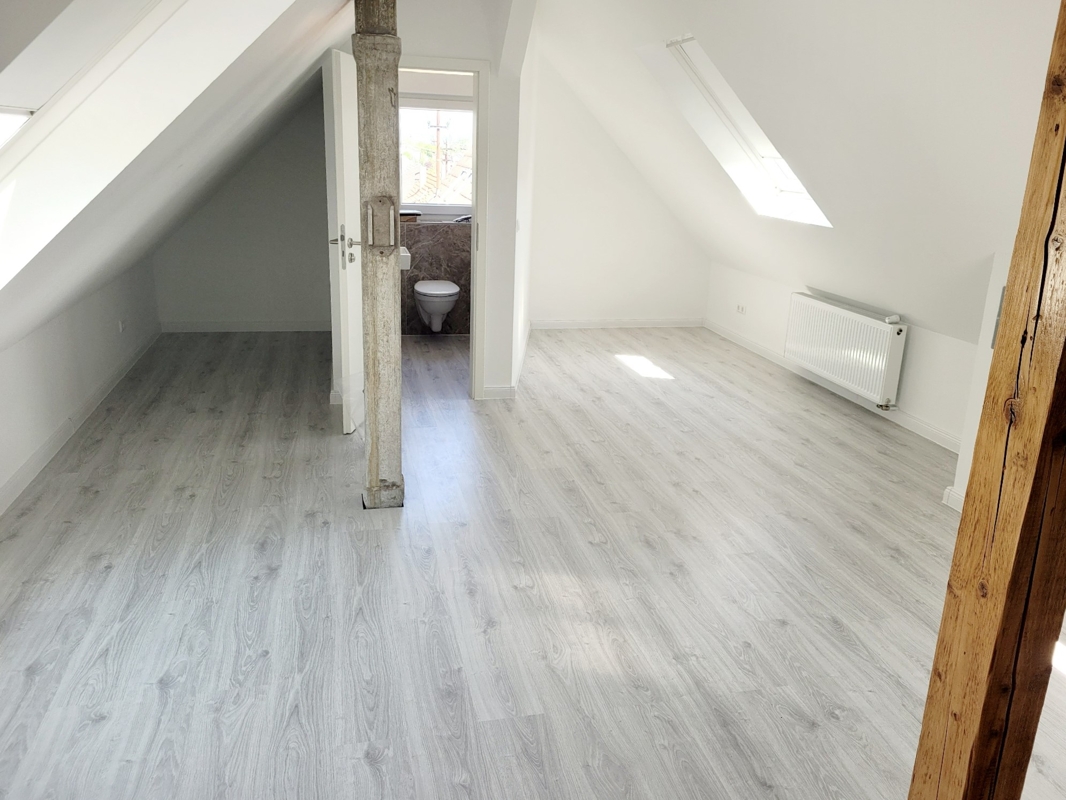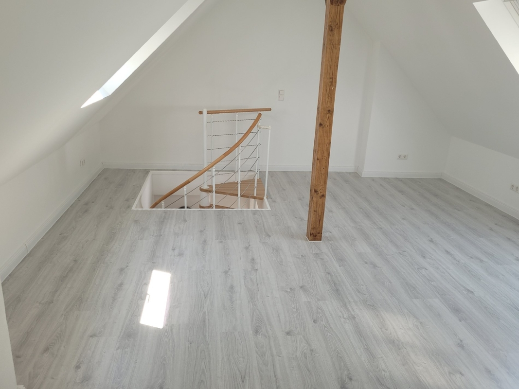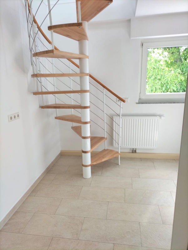 In den oberen Teil (DG) gelangt man über die Wendeltreppe zum großen Raum mit WC.