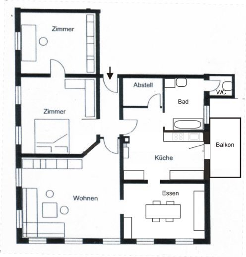 Das 4.Zimmer ist ein Durchgangszimmer (Siehe Grundriss).