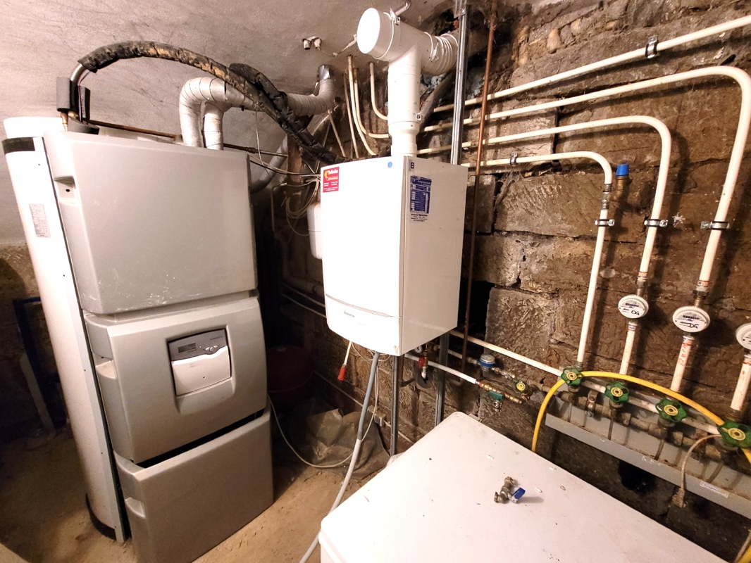 Im Untergeschoss ist der große Natur-Gewölbekeller und die Gas-Heizungsanlage von 2010 (Solarunterstützte Gastherme). Der Flüssiggas-Tank, (Miettank - wird jährlich TÜV-gewartet), befindet sich im Garten. Ganz oben im Haus ist der Dachbodenraum. Auf dem Dach des Hauses sind Solar-Module angebracht. Im Haus ist SAT-Anschluß.