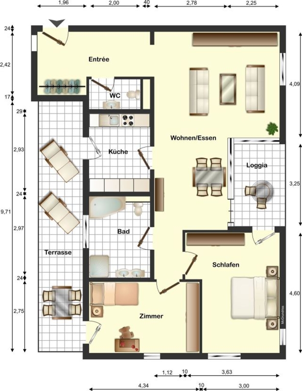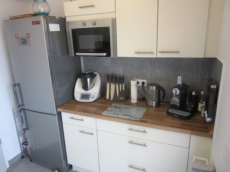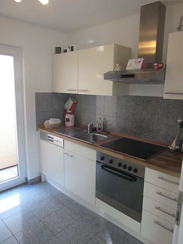Die Böden der Wohnung sind mit Laminat ausgestattet. Alle Rolläden sind elektrisch zu betreiben. Das Tageslichtbad verfügt über eine Eckwanne, Duschkabine, 2 Waschbecken und ein WC. Ein Gäste-WC steht ebenfalls zur Verfügung. Vom hellen Wohn- und Essbereich kommt man auf die Loggia, vom Kinderzimmer und der Küche gelangt man auf den geräumigen Balkon mit Abendsonne. Die Einbauküche mit allen elektrischen Geräten kann vom Vormieter für € 500,- übernommen werden. Die Wohnung wird mit frisch in weiß gestricher Rauhfasertapete übergeben. Im UG, bequem mit dem Aufzug zu erreichen ist der Kellerraum, Waschmaschinenraum, Fahrradraum und den 2 Tiefgaragen-Stellplätzen (je € 50,-). Im Haus ist Kabelanschluß.Sonstige Angaben: