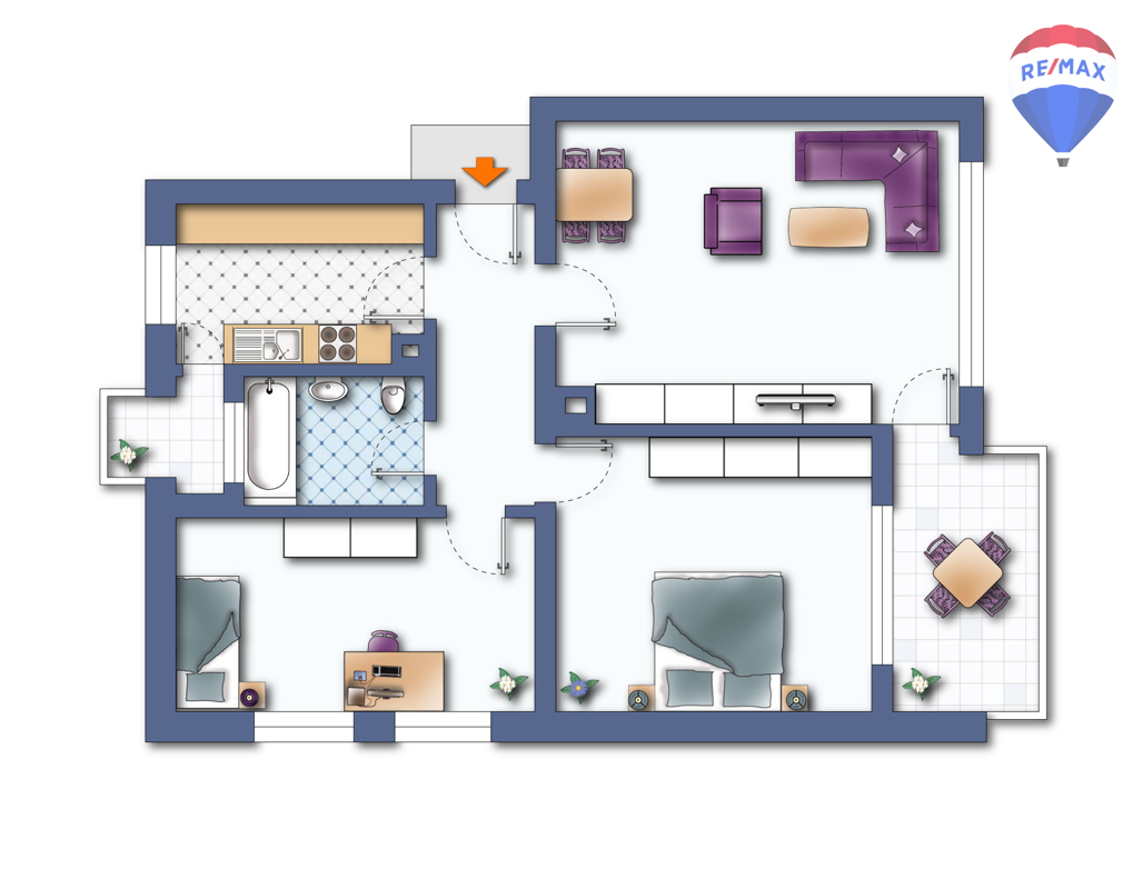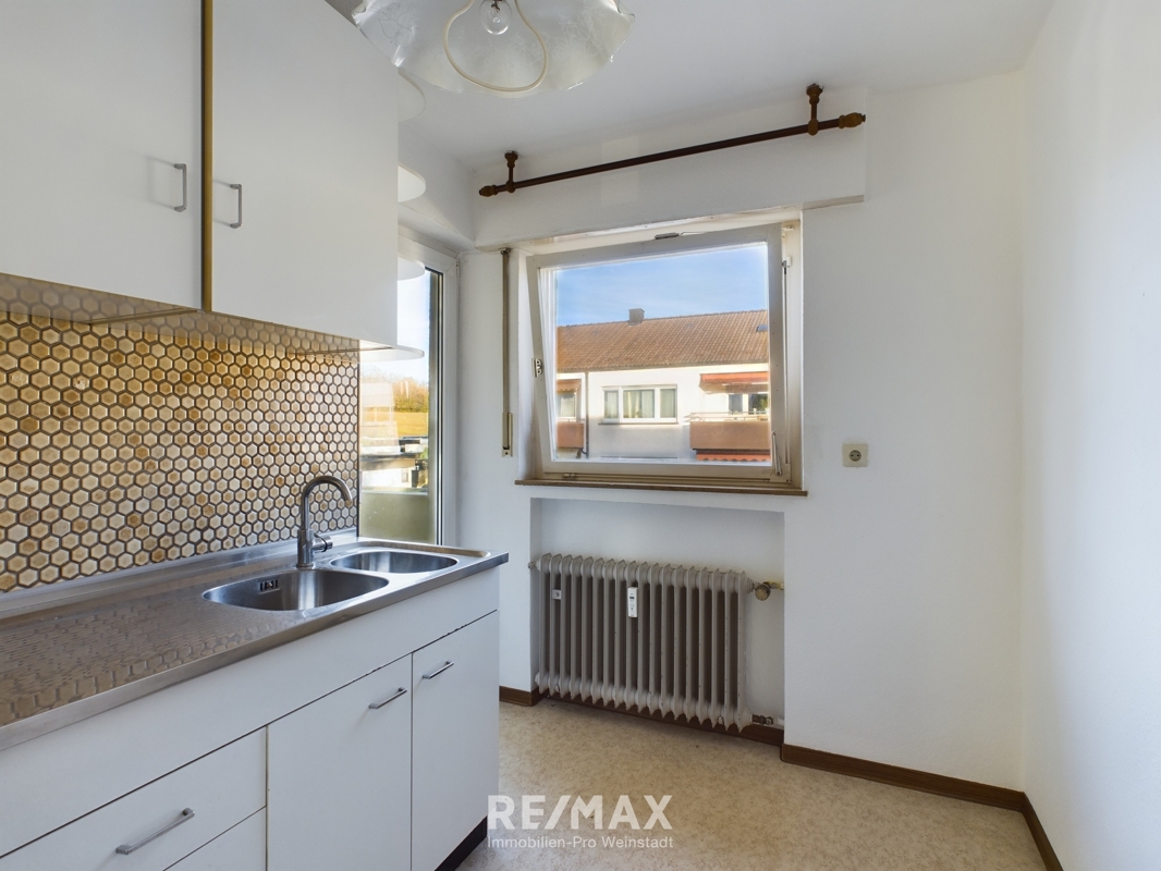 Im Flur gleich zur rechten Seite befindet sich eine kompakte, aber funktionale Küche mit Zugang zu einem kleinen, aber charmanten Balkon. Ein perfekter Ort, um frische Luft zu schnappen und den Tag zu beginnen.