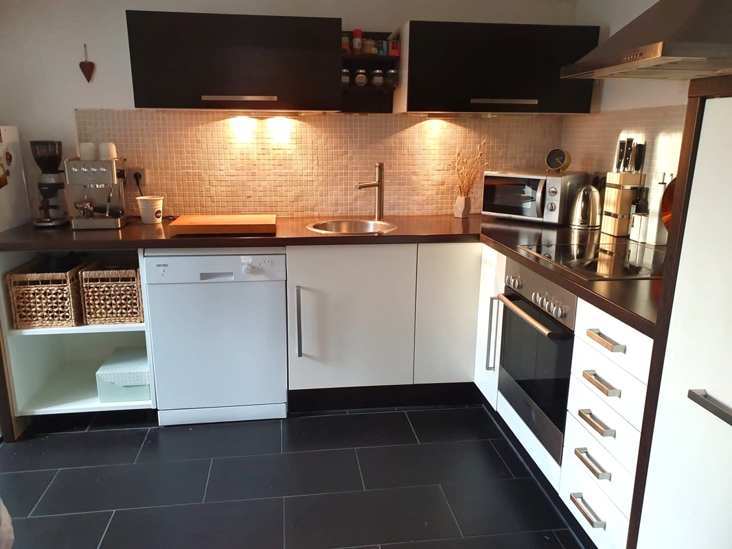 Die Küche ist mit einer modernen Einbauküche (2020) ausgestattet.