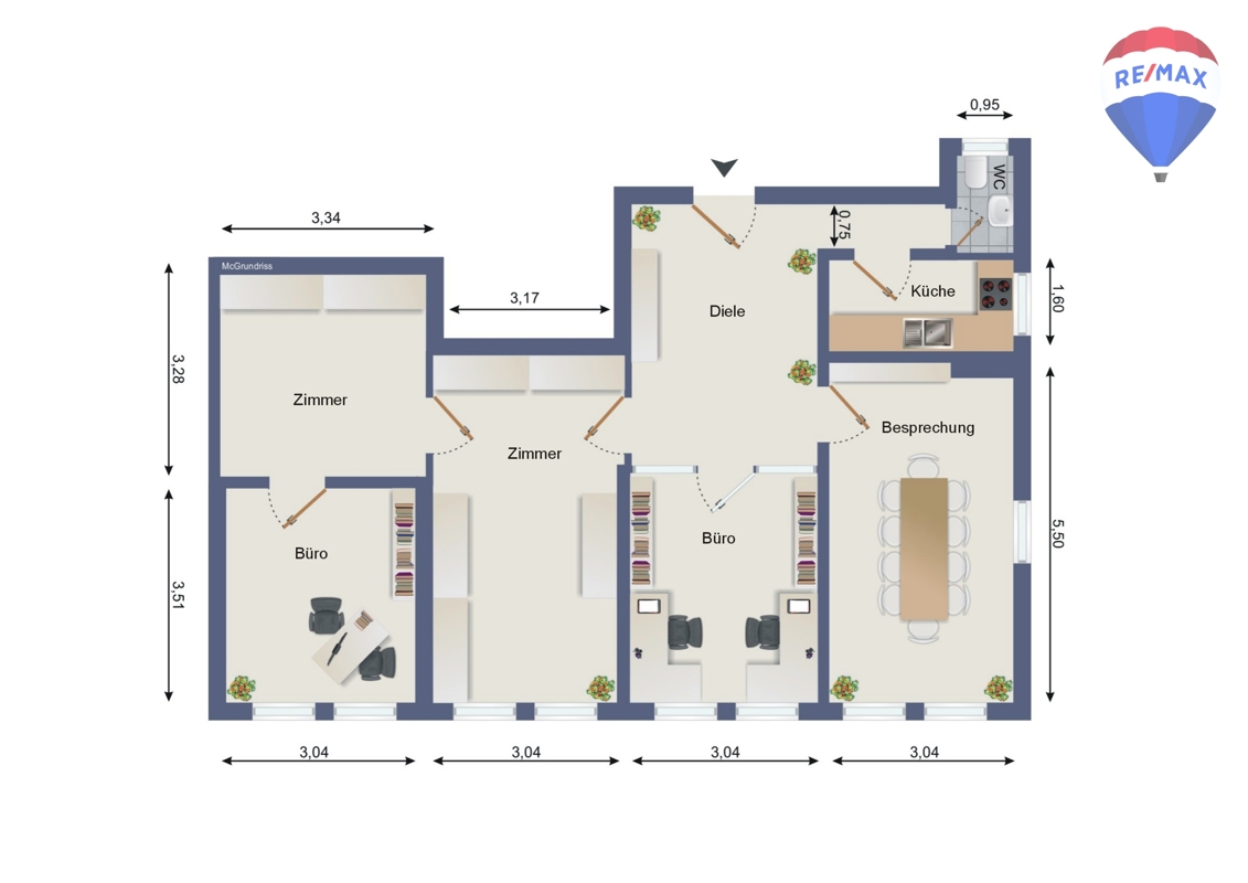 Die Räume sind mit neuen Vinylböden ausgestattet. Die Wände und Decken sind frisch auf Raufaser gestrichen. Schalter und Steckdosen sind neu.Es stehen 5 Räume, 1 Küche (ohne Einbauten) und ein WC zur Verfügung. Die großen Fensterfronten sorgen für viel Licht in den Räumen.
