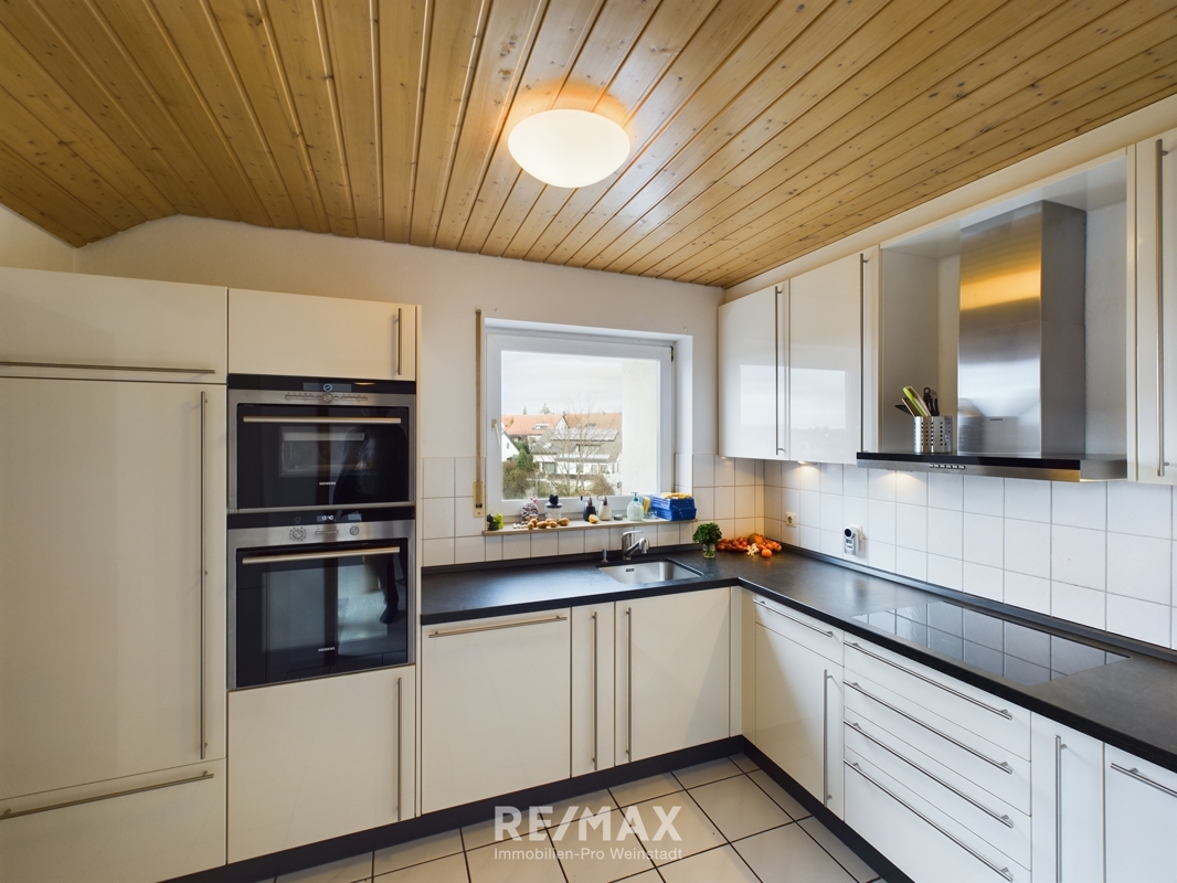 Das Tageslichtbad verfügt über eine Wanne, Dusche, ein WC und 2 Waschbecken. Die moderne und sehr gepflegte Einbauküche mit allen elektrischen Geräten kann vom Vormieter übernommen werden. (Preis Verhandlungssache). Vom Wohn-Essbereich gelangt man auf die Loggia mit toller Fernsicht und Mittag- und Abendsonne. Im UG ist der geräumige Kellerraum, der gemeinschaftliche Waschmaschinenraum und der Fahrradraum. Zur Wohnung gehört eine Garage (50,- ) und ein Stellplatz im Freien (25,-) und muß dazu gemietet werden. Angenehm ist der Hausmeisterservice. Im Haus ist Kabelanschluß (Kabel-BW).