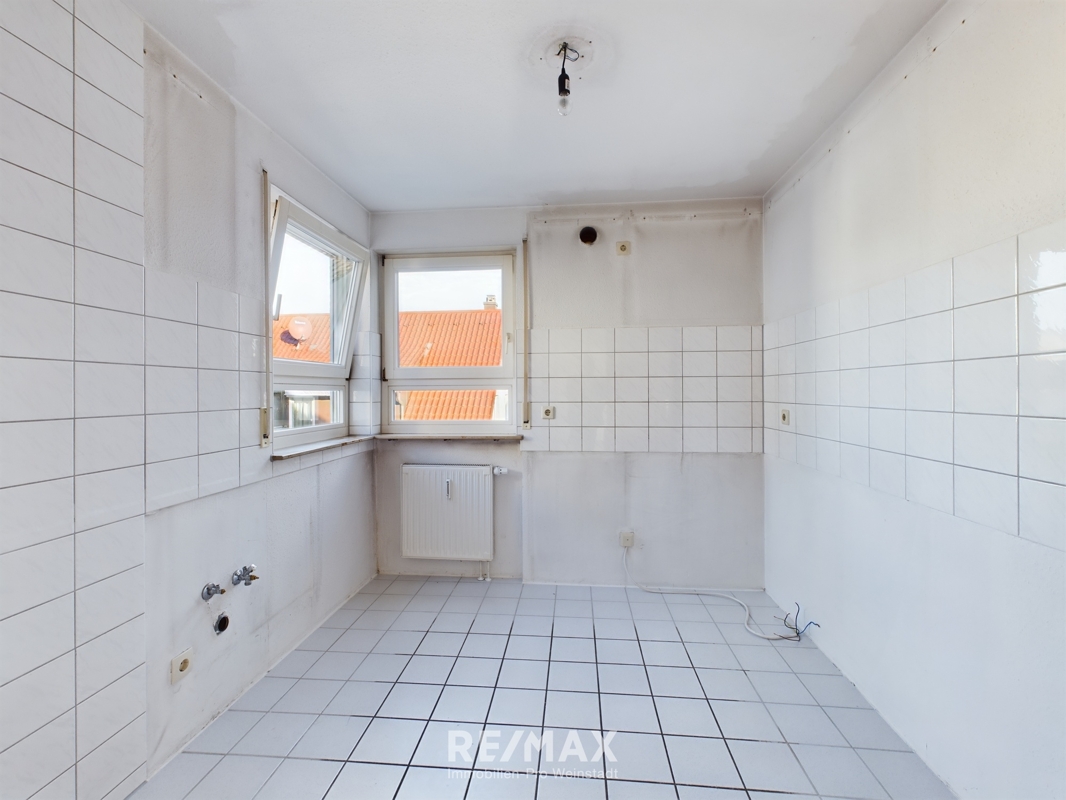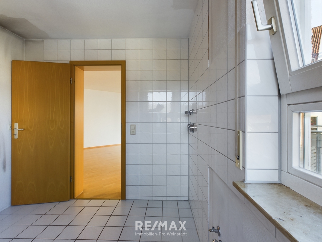 Wohn- Essbereich: ca. 33 qm mit zwei Zugängen zum Balkon, ParkettbodenKüche: ca. 7 qm ohne Einbauküche, Fliesenboden