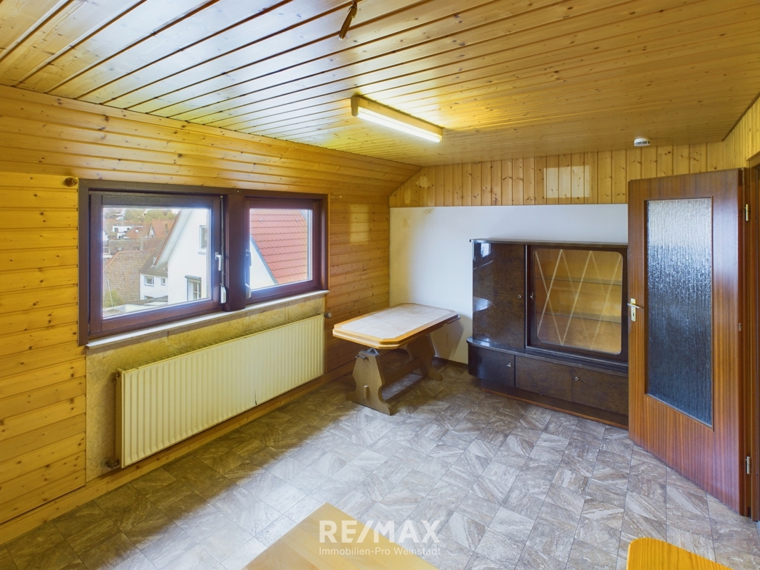 Zum Verkauf steht eine renovierungsbedürftige Dachgeschosswohnung in Weinstadt.Das im Jahr 1958 erbaute Objekt verfügt über eine Wohnfläche von 48 m² und besteht aus drei Zimmern, darunter zwei Schlafzimmern und einem Badezimmer.