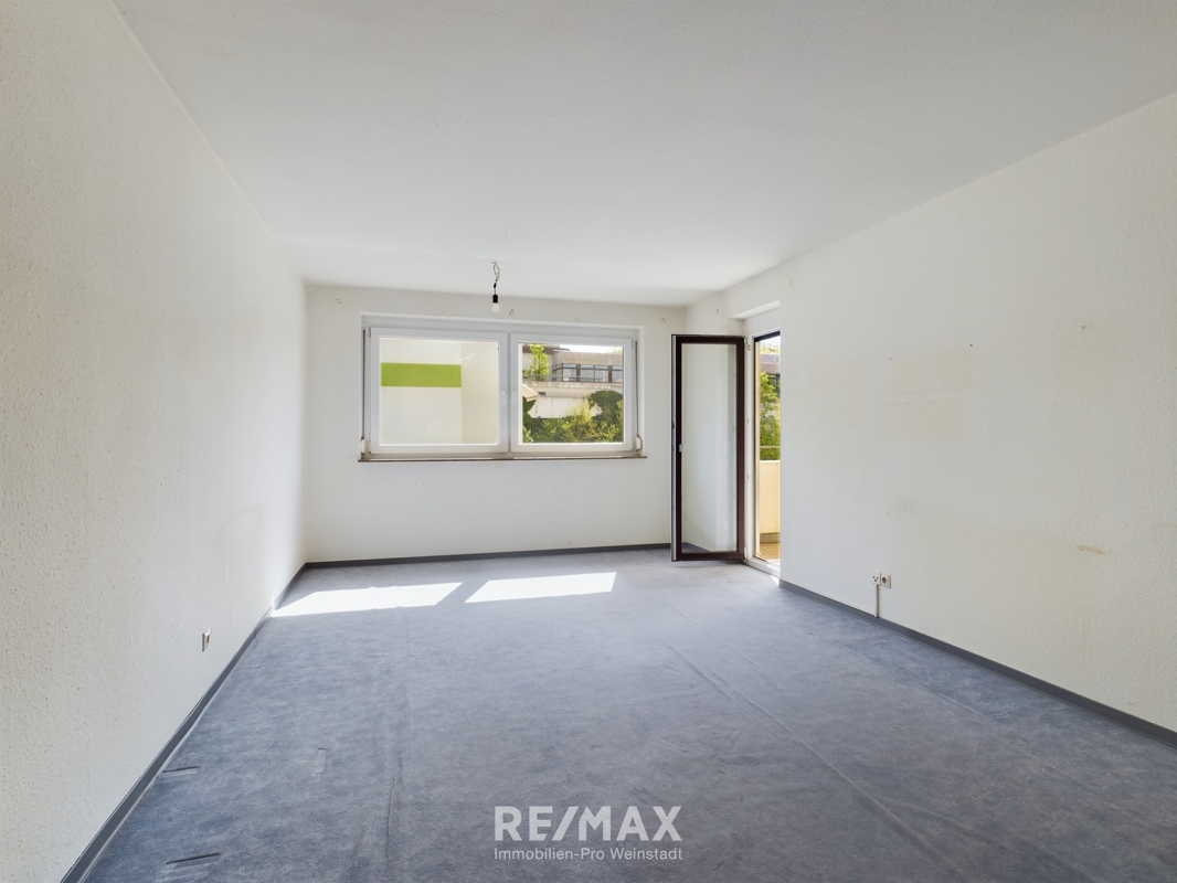 -- Geräumiger Wohnbereich mit Zugang zum überdachten Süd-Balkon