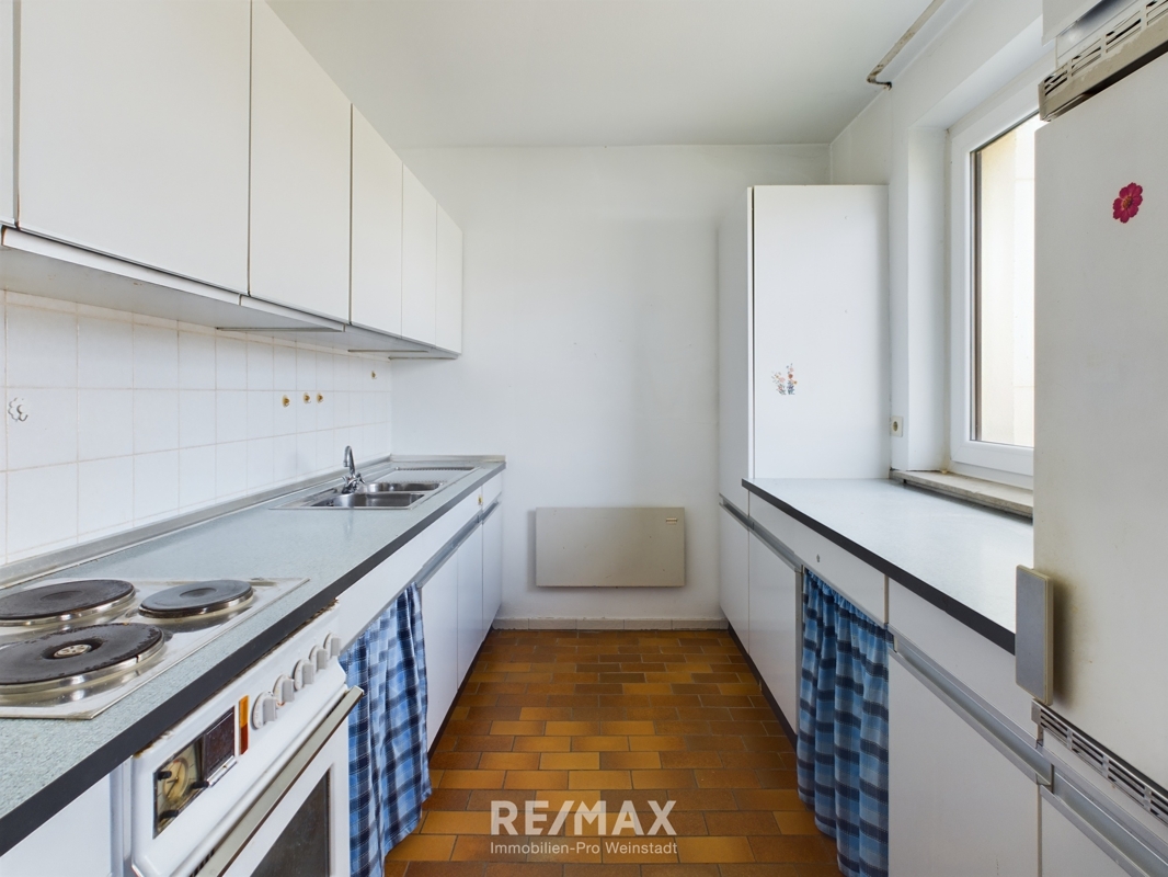-- Küche mit alter Einbauküche und Waschmaschinenanschluß (durch neue Verkabelung möglich).