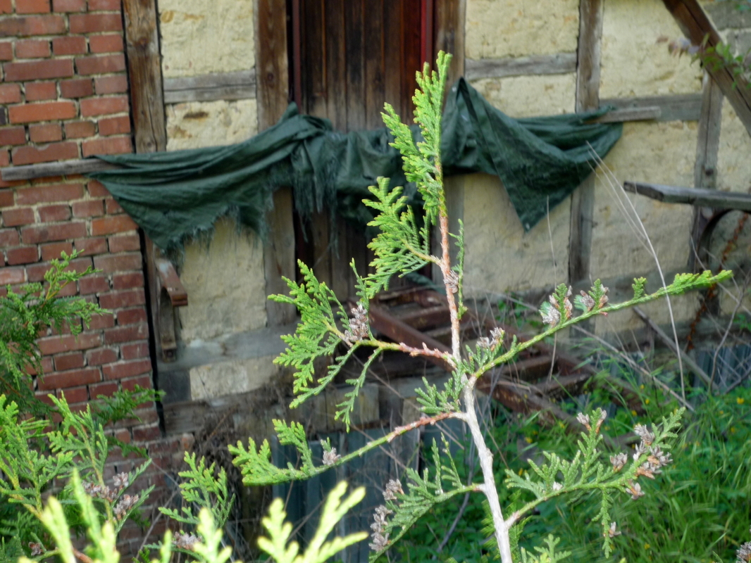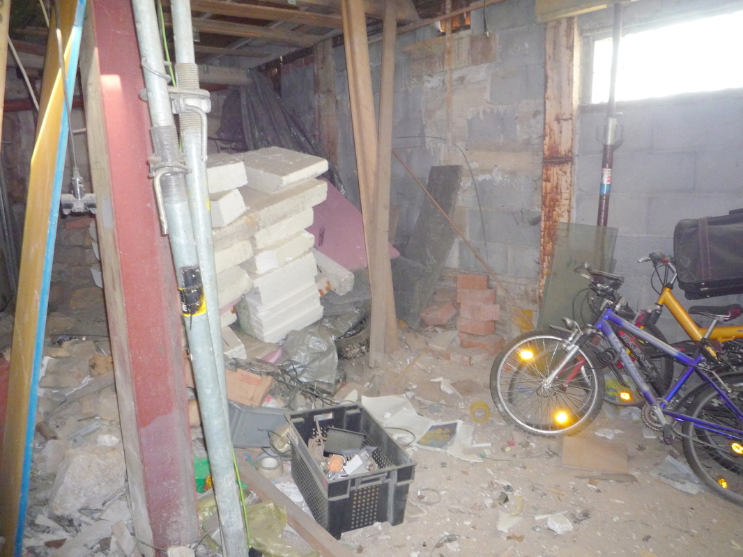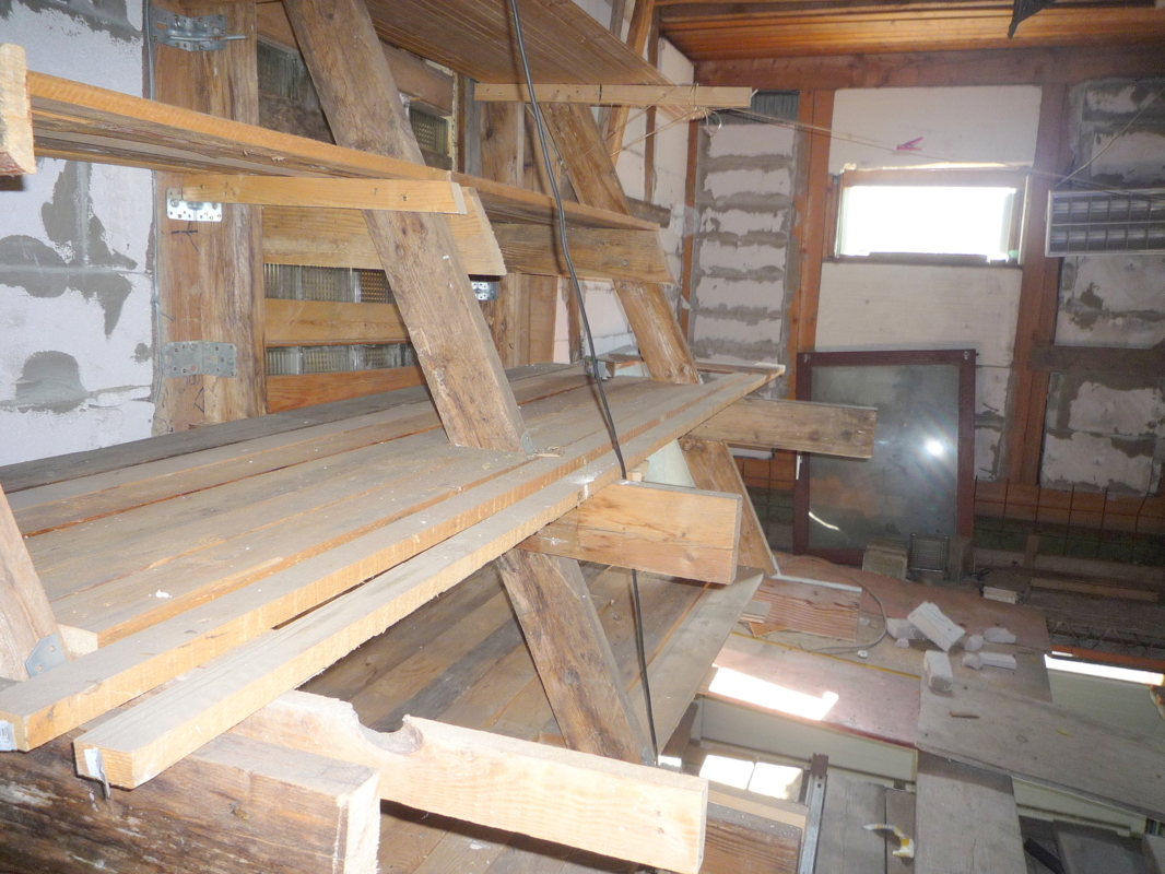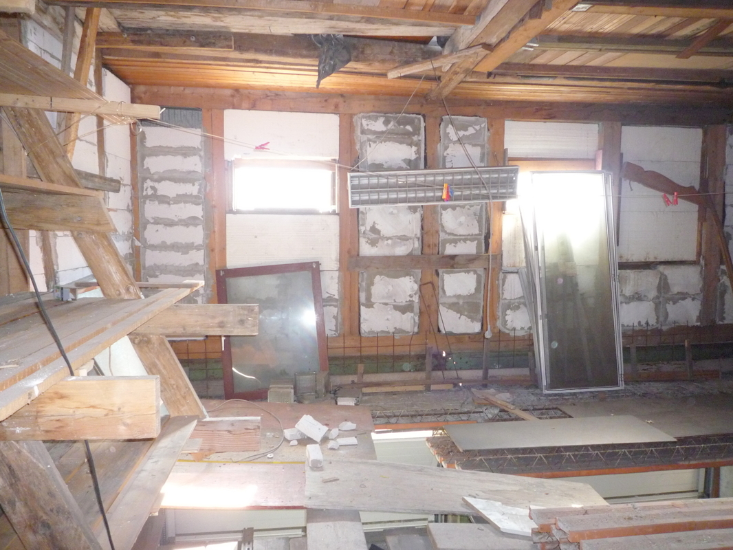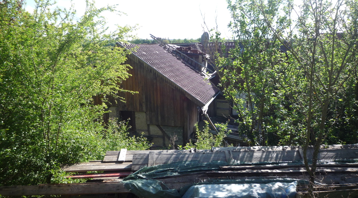 Die Dachdeckung müsste dringend neu ergänzt und gedämmt werden, eine Renovierung ist mit viel Aufwand und Idealismus denkbar.