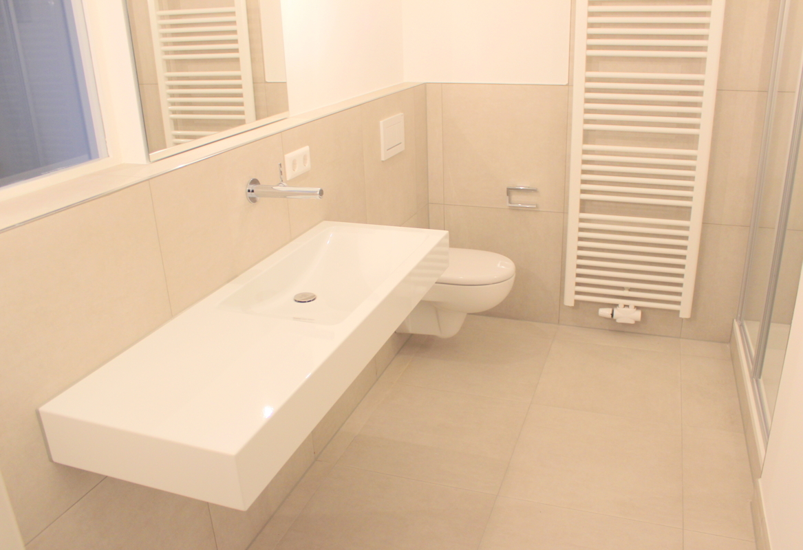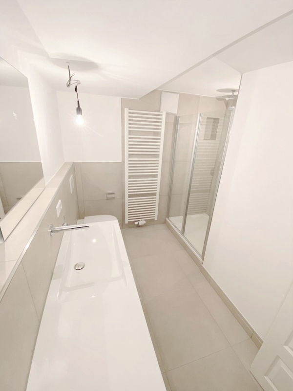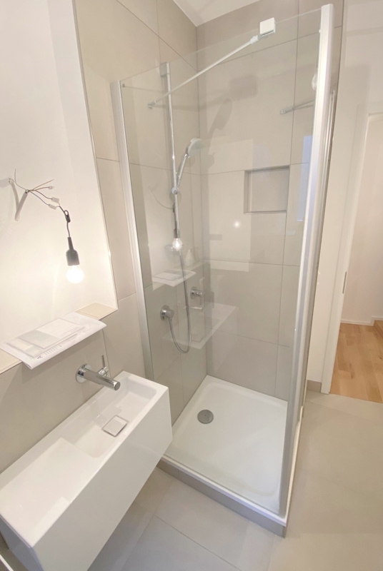 - 2 neue Bäder mit Glasduschen, WB, WC und Handtuch-Heizkörper