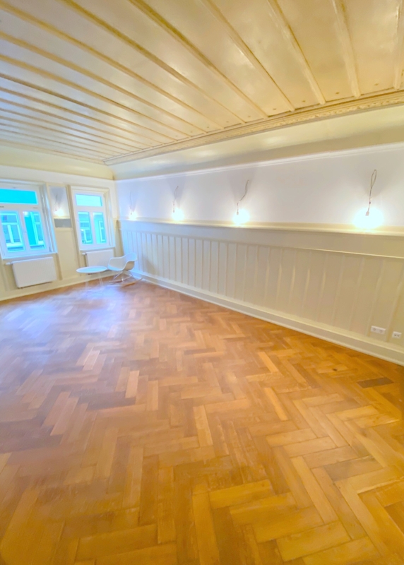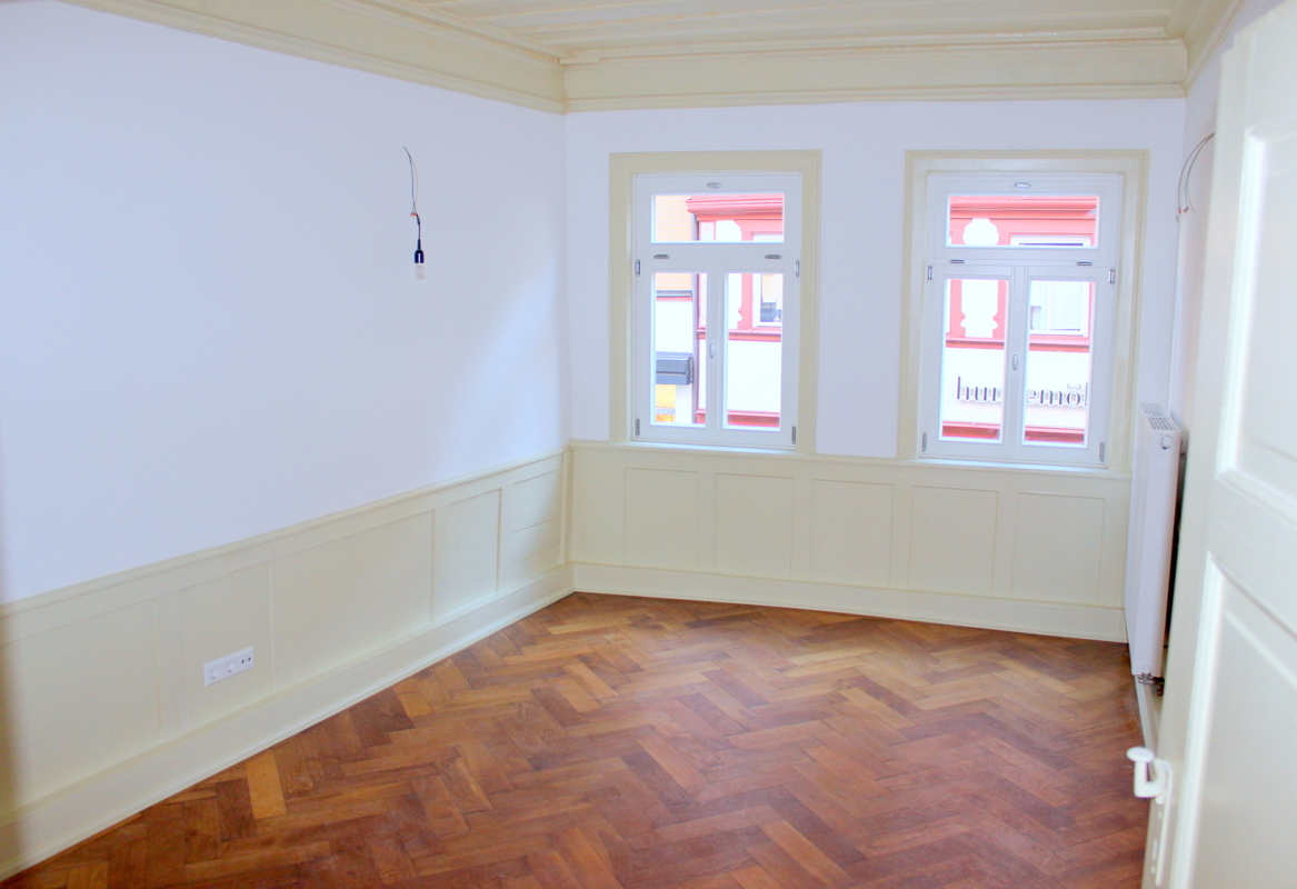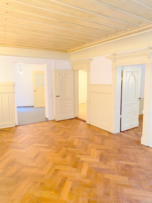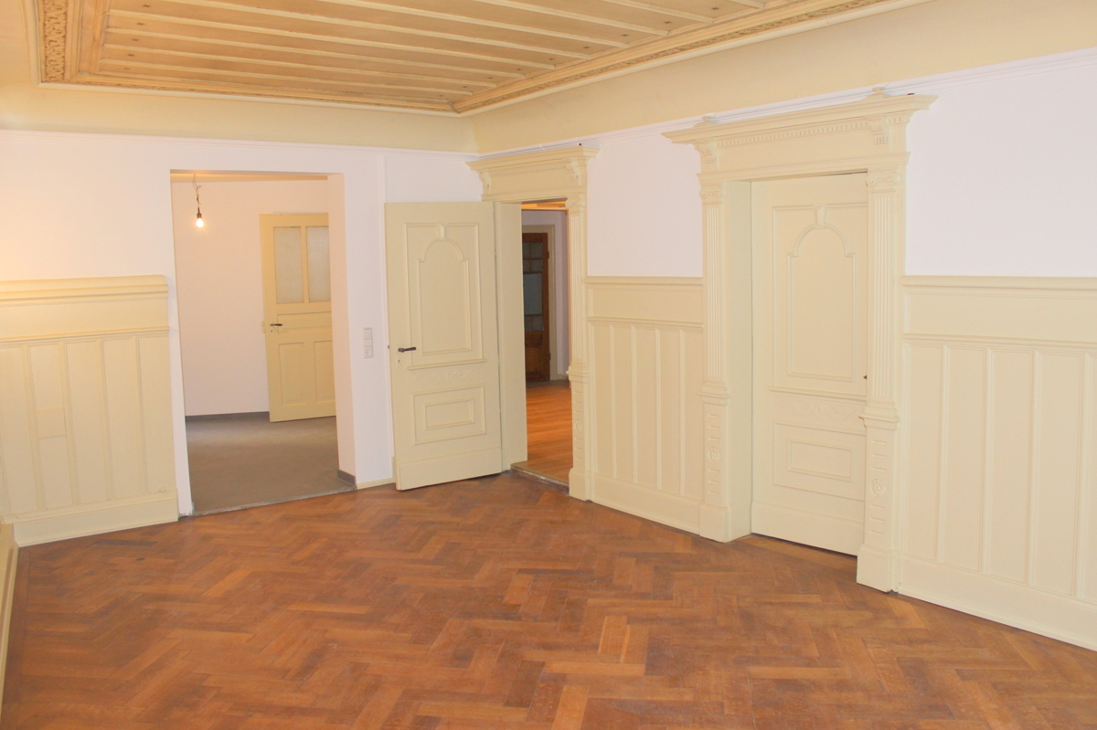 Diese großzügige 3,5-Zimmer- Altbauwohnung ist komplett saniert mit ca. 100 m² Wohnfläche.- Wohn- u. Esszimmer mit Fischgrät-Parkett