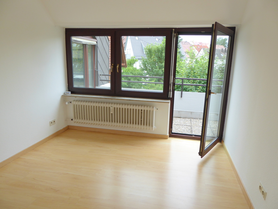 helle 3-Zi.-DG-Wohnung in grüner Umgebung:- helles Wohnzimmer mit Zugang zum Balkon