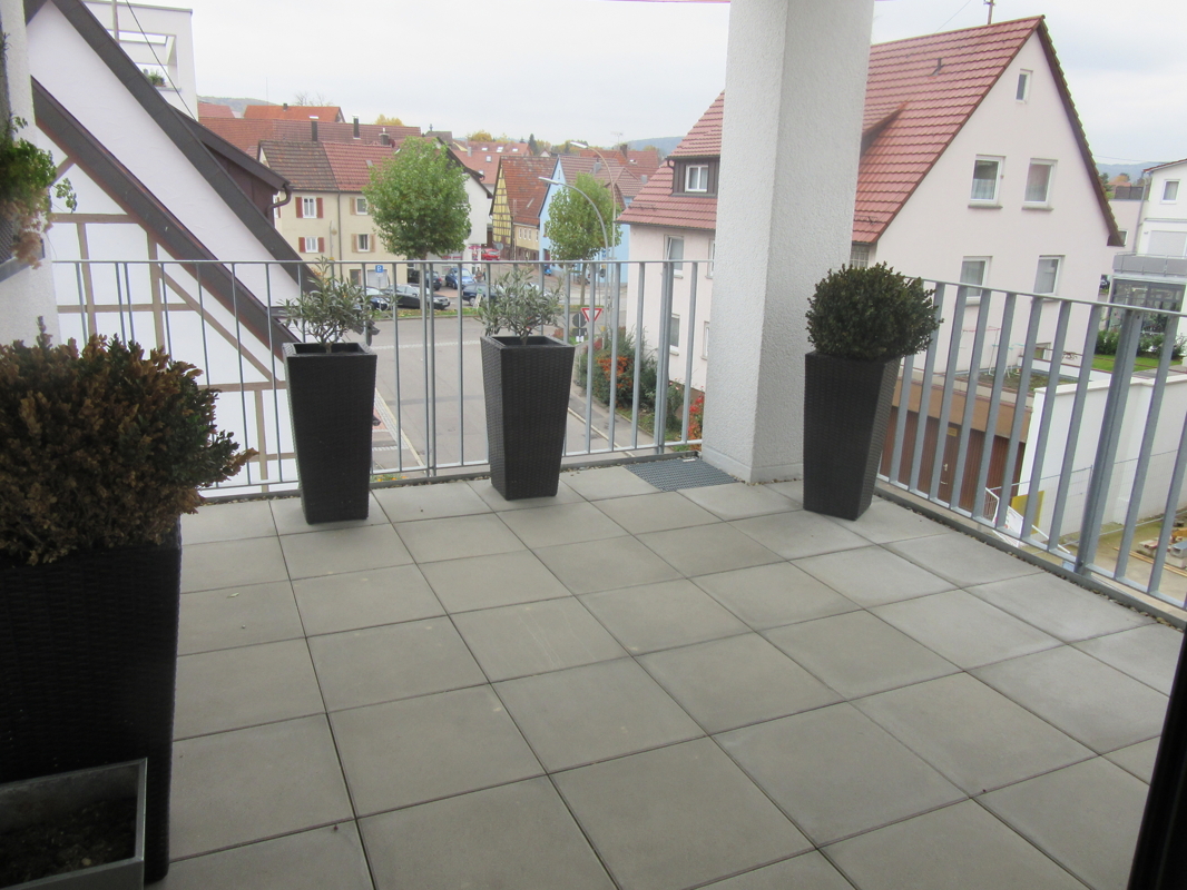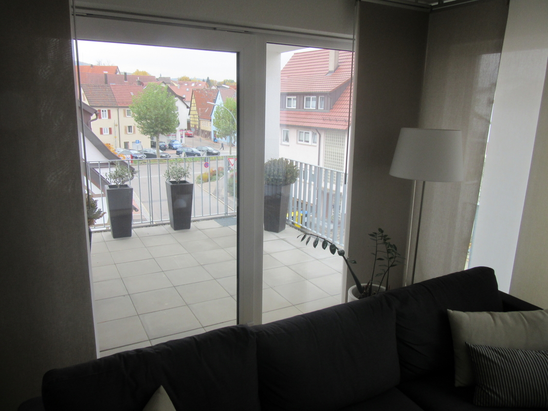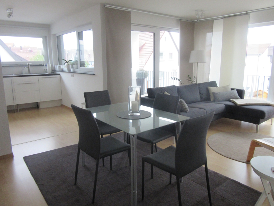 Vom Wohn-Essbereich gelangt man auf den überdachten Süd/West-Balkon.
