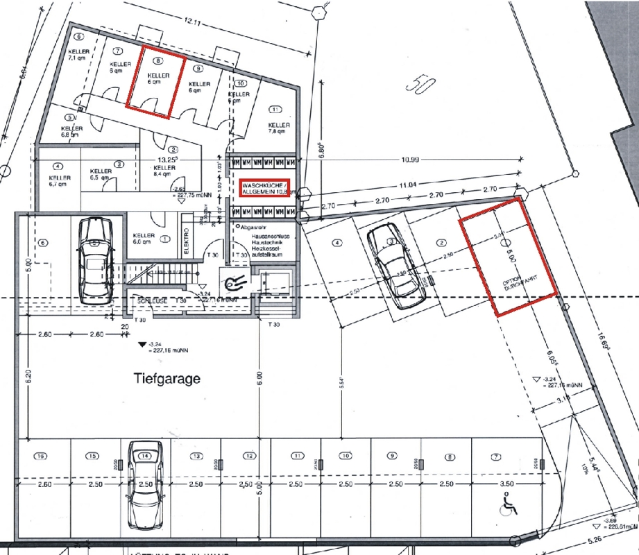 Im Untergeschoss ist der Kellerraum, Waschmaschinenraum, Fahrradraum und der Tiefgaragen-Stellplatz (€ 50,-).