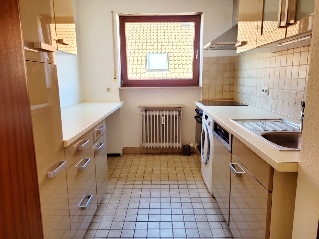 Die Küche verfügt über eine Einbauküche mit Kühlschrank, Spülmaschine, Ceran-Herd, Ablufthaube, Backofen, Waschmaschine und hat noch Platz für einen Wäschetrockner.