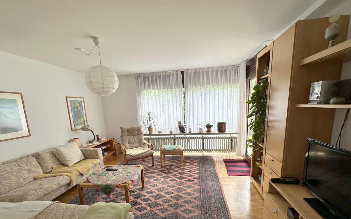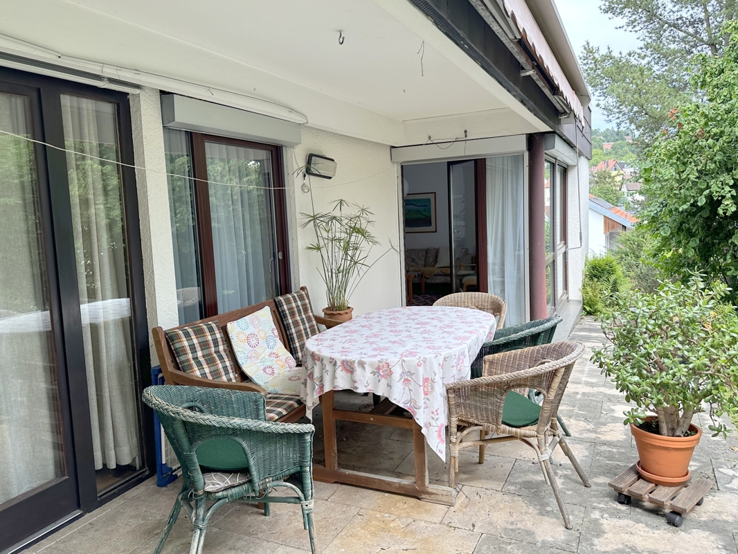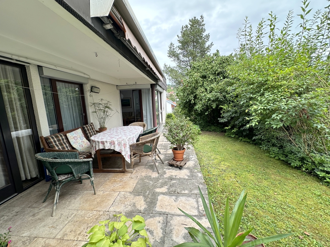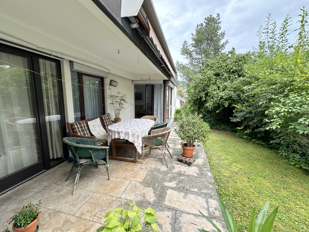 Zum Verkauf angeboten wird eine ruhige 5,5 -Zimmerwohnung im Erdgeschoss mit Garten und Terrasse.