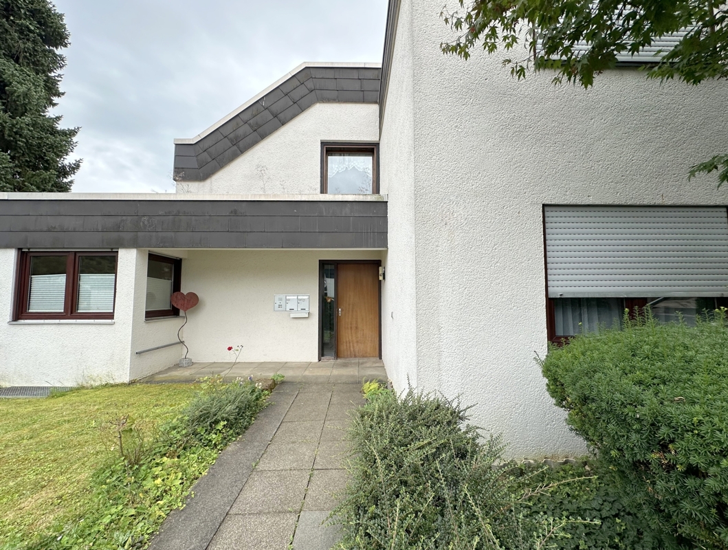Die Wohnung liegt in einem Terrassenhaus, das zu einer größeren Wohneinheit gehört.