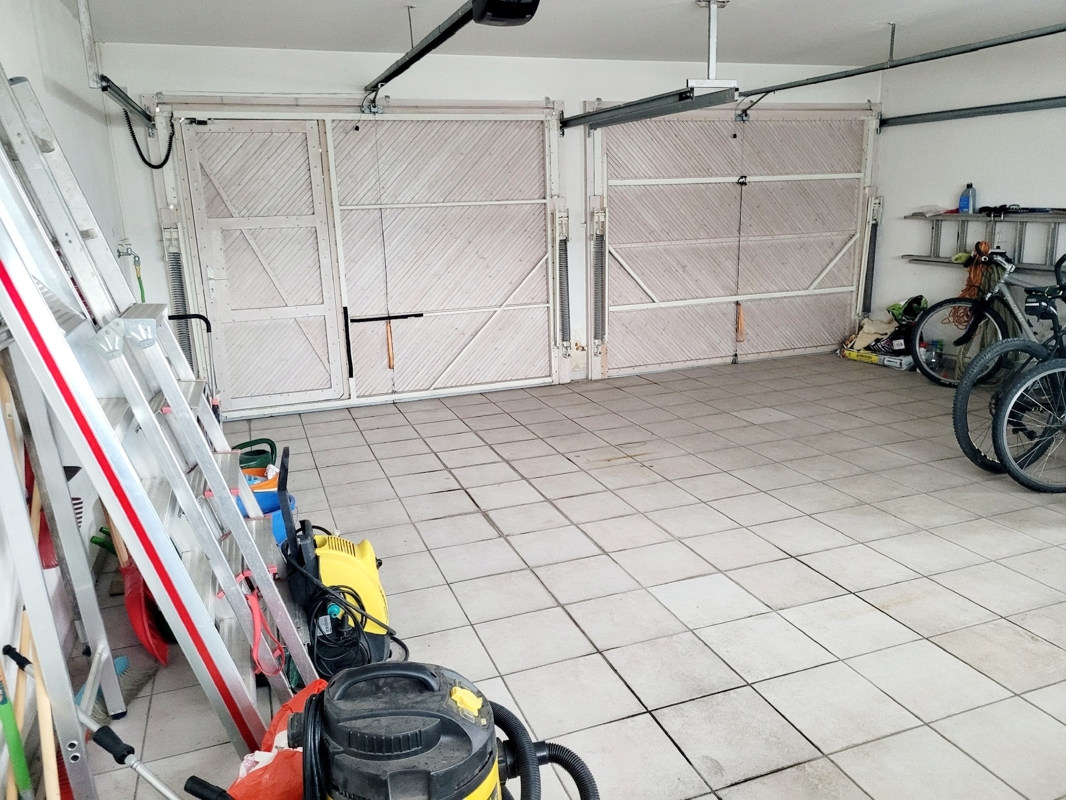 Zum Haus gehört der rechte Teil der Doppelgarage mit Stellplatz davor.