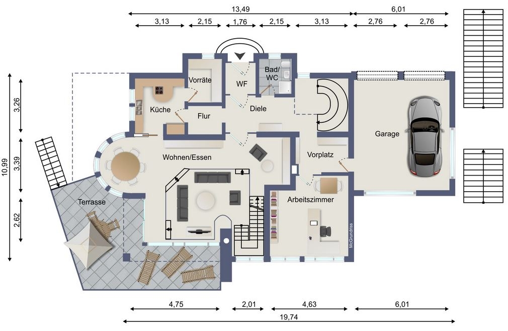 Das Haus erstreckt sich über 3 Etagen:UG: