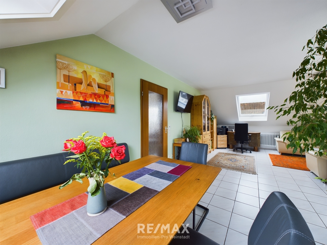Die hier angebotene Dachgeschosswohnung befindet sich in der idyllischen Gemeinde Winterbach. Winterbach liegt im Herzen Baden-Württembergs und gehört zum malerischen Remstal. Die Region zeichnet sich durch eine hervorragende Infrastruktur und eine hohe Lebensqualität aus. Einkaufsmöglichkeiten, Restaurants und Cafés sind in der Nähe und bieten eine breite Vielfalt an Erlebnissen. Bildungseinrichtungen wie Schulen und Kindergärten sind ebenfalls gut erreichbar, was die Lage besonders attraktiv für Familien macht.Die Anbindung an den öffentlichen Nahverkehr ist ideal. Der Bahnhof Winterbach sorgt für eine schnelle Verbindung nach Stuttgart und in andere umliegende Städte. Zudem erreicht man über die nahegelegenen Bundesstraßen zügig das überregionale Straßenverkehrsnetz. Für Naturliebhaber bietet die Umgebung vielfältige Freizeitmöglichkeiten, darunter Wander- und Radwege durch das Weinbaugebiet sowie zahlreiche Parks und Grünanlagen, die zu erholsamen Spaziergängen einladen.