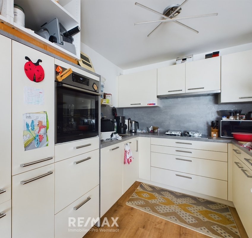 - Großzügiger Wohnbereich mit offener Küche und Zugang zum großen Balkon- Einbauküche mit allen gängigen Geräten.