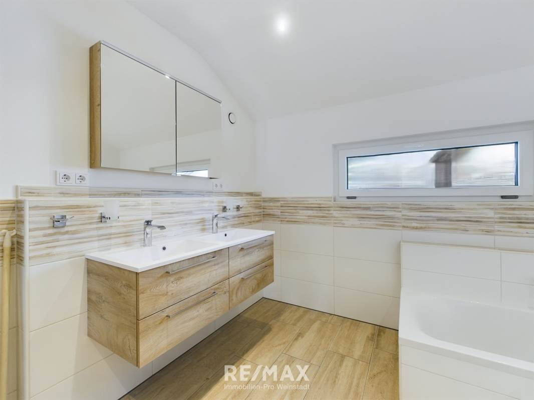 + Traumbad mit Wanne, bodentiefe Dusche, Doppelwaschtisch und Spiegelschränke
