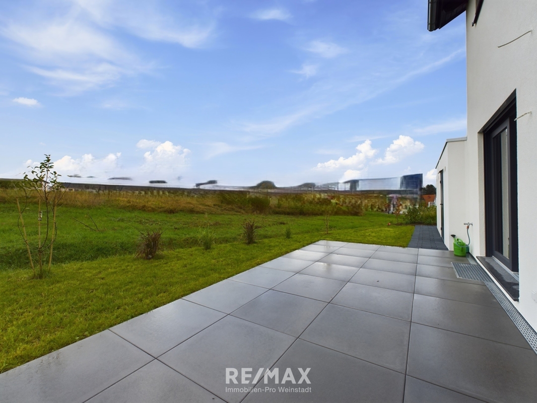 + Sonnige Terrasse mit Garten