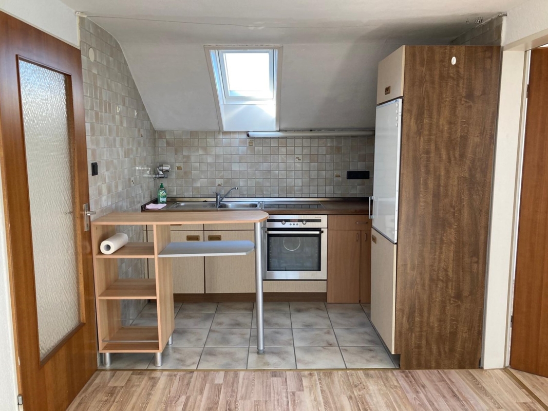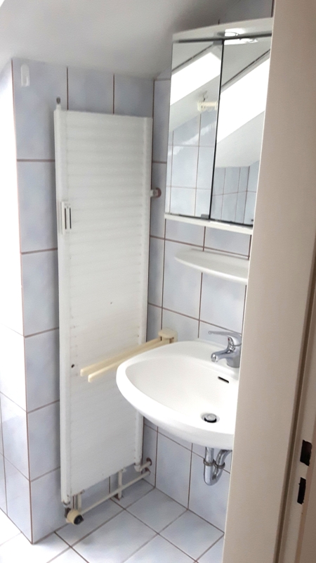 2,5-Zimmer Dachgeschosswohnung für den SINGLE (nur für 1 PERSON !) in einem gepflegten 3-Familienhaus in sehr ruhiger Lage von Weinstadt-EndersbachDie Böden der Wohnung sind mit Laminat und Fliesen ausgestattet. Das Tageslichtbad hat eine Wanne, (in der Schräge, nicht für große Leute gedacht), ein WC und ein Waschbecken. Die Wohnung hat einen offenen Küchenbereich mit Einbauküche (gehört zur Wohnung) und integriertem Essbereich. Vom Wohnzimmer gelangt man auf den kleinen Balkon. Im Haus ist Kabelanschluß.