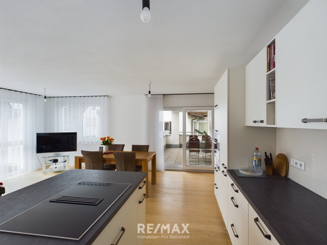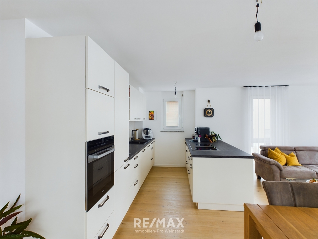 Die Wohnung beeindruckt durch helle, lichtdurchflutete Räume mit bodentiefen Fenstern und einer optimalen Raumaufteilung. Der großzügige Wohn- und Essbereich ist offen gestaltet und bietet Zugang zur überdachten Balkonloggia – ideal für entspannte Stunden im Freien. Die offene Küche mit Kochinsel fügt sich nahtlos in das Wohnkonzept ein und lässt keine Wünsche offen. Die hochwertige Küche kann nach Absprache von der aktuellen Mieterin übernommen werden.