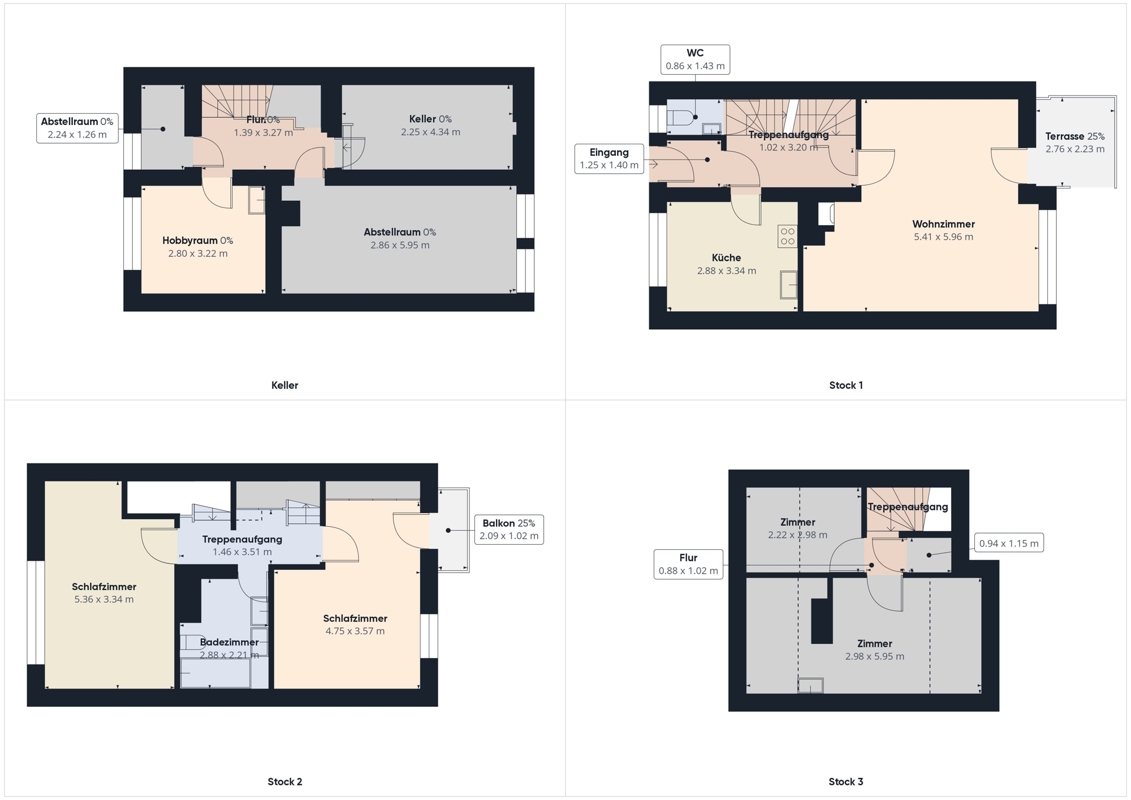 114,23 m² Wohnfläche verteilt auf 4 Zimmer plus ein praktischer Hobbyraum im Untergeschoss