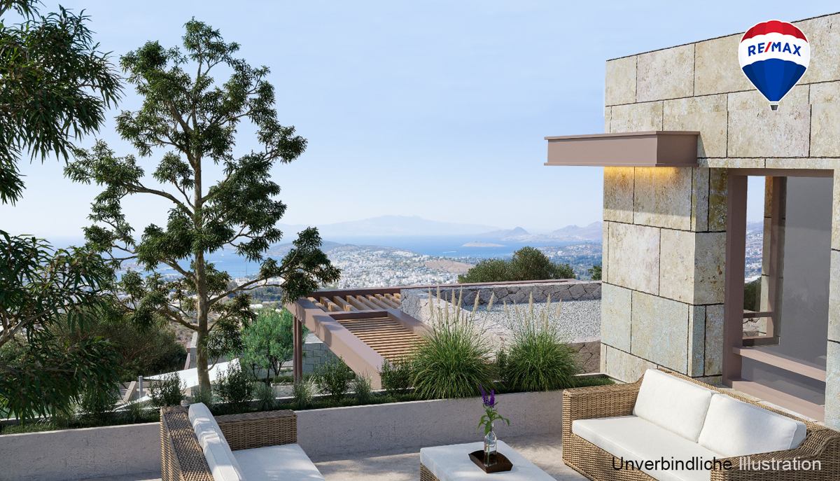Die exklusive Wohnanlage „Mahal Bodrum“ liegt in der begehrten und zentralen Lage von Konacık, einem gehobenen Stadtteil, der nur wenige Minuten vom lebendigen Stadtzentrum Bodrums entfernt ist. Dieser Standort vereint das Beste aus urbanem Komfort und einer naturverbundenen, ruhigen Umgebung – ideal für ein ausgeglichenes und komfortables Lebensgefühl.Von der erhöhten Position des Anwesens aus genießen Sie einen unverbauten, atemberaubenden Panoramablick über die Bucht von Bodrum und das endlose Blau der Ägäis.