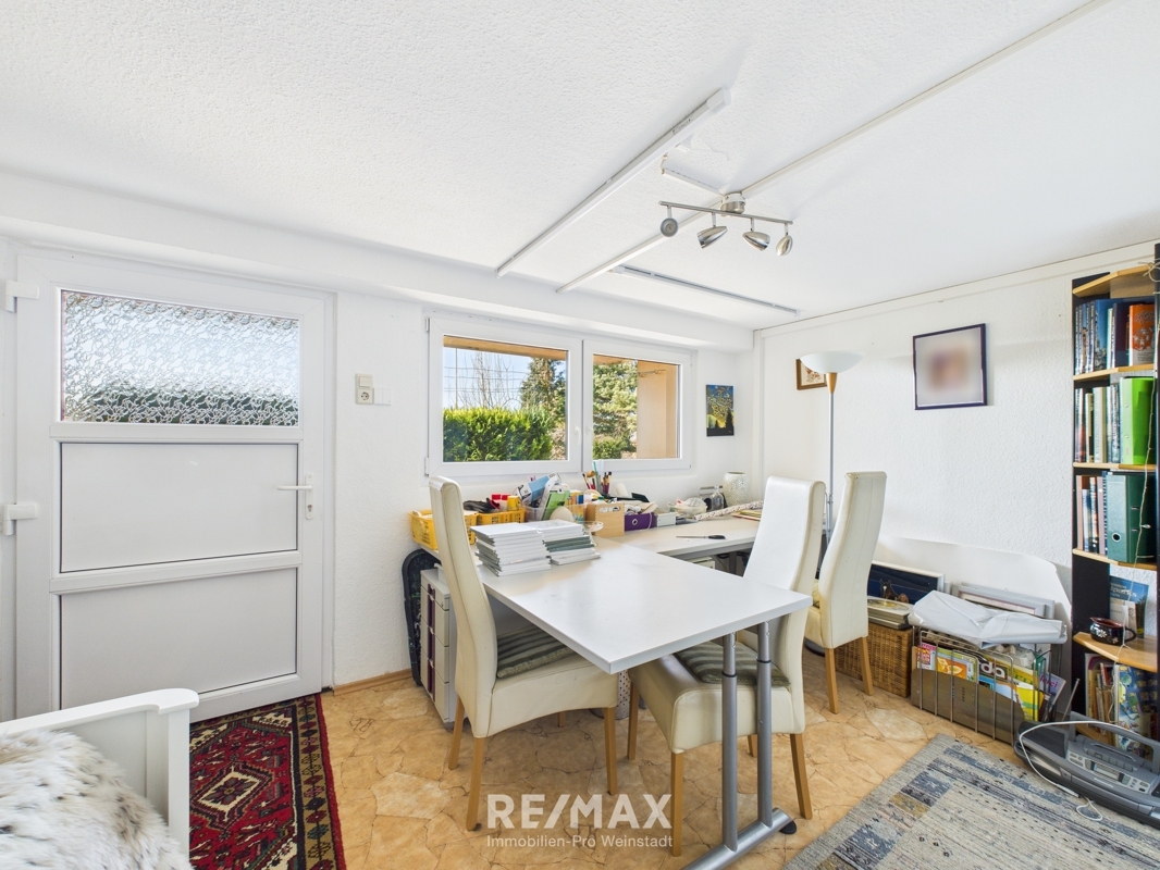Keller: voll unterkellert, inkl. praktischem Multifunktionszimmer mit eigenem Eingang, das bereits als Kinderzimmer, Büro, Laden oder Kellerbar genutzt wurde. Solide Bauweise, viel Stauraum.
