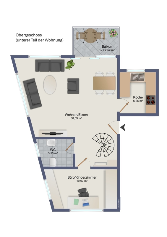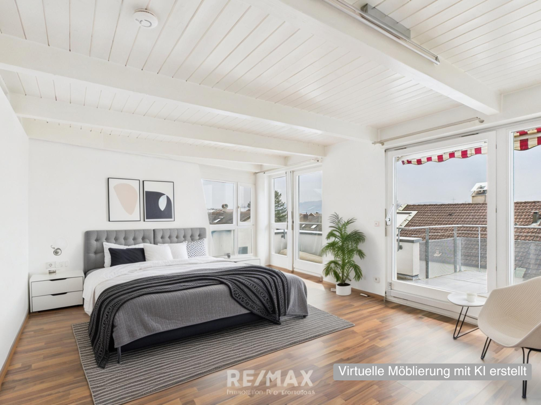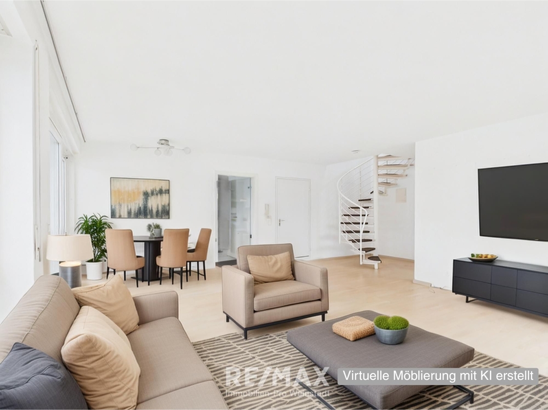 Die Maisonette-Wohnung überzeugt nicht nur durch ihre stilvolle Ausstattung, sondern auch durch ihre durchdachte Raumaufteilung und erstklassige Lage am Ortsrand.