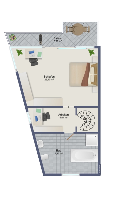 Ein Highlight der Wohnung sind die zwei großzügigen nach Südwesten ausgerichteten Balkone, die zu gemütlichen Stunden im Freien einladen und einen herrlichen Ausblick auf die Umgebung bieten.